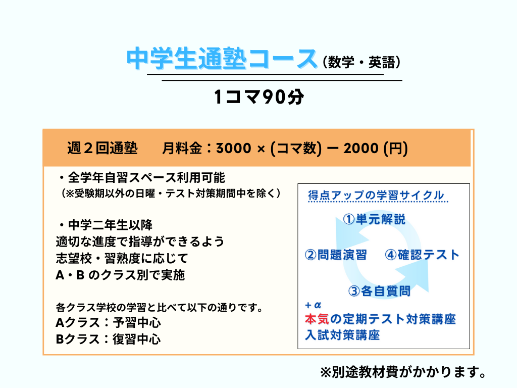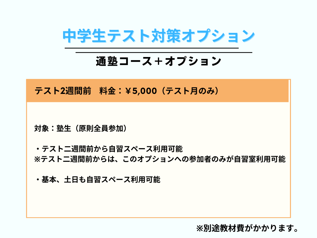 中学生集団定期テスト対策 ~通塾コース+オプション~