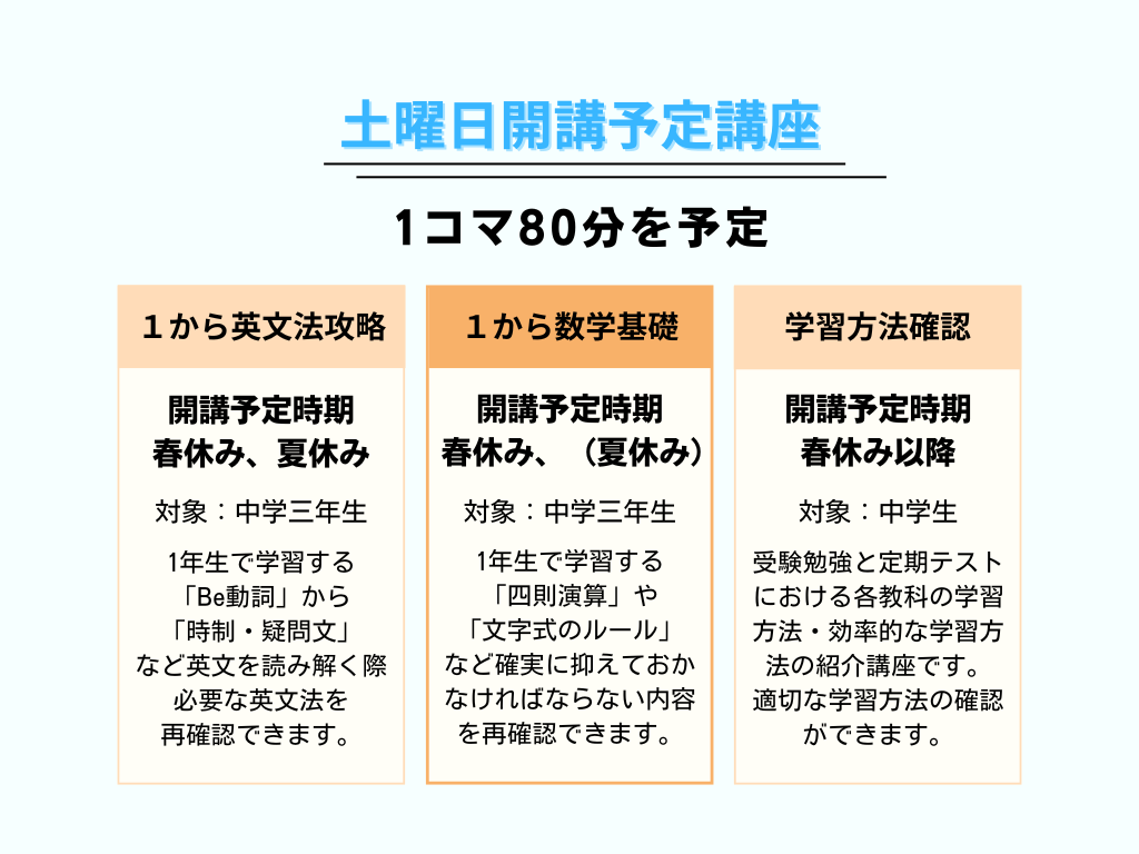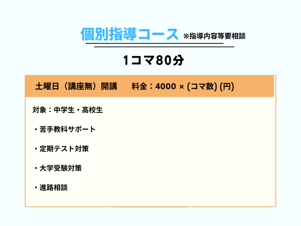 中学生・高校生個別指導 ~土曜日通塾コース~